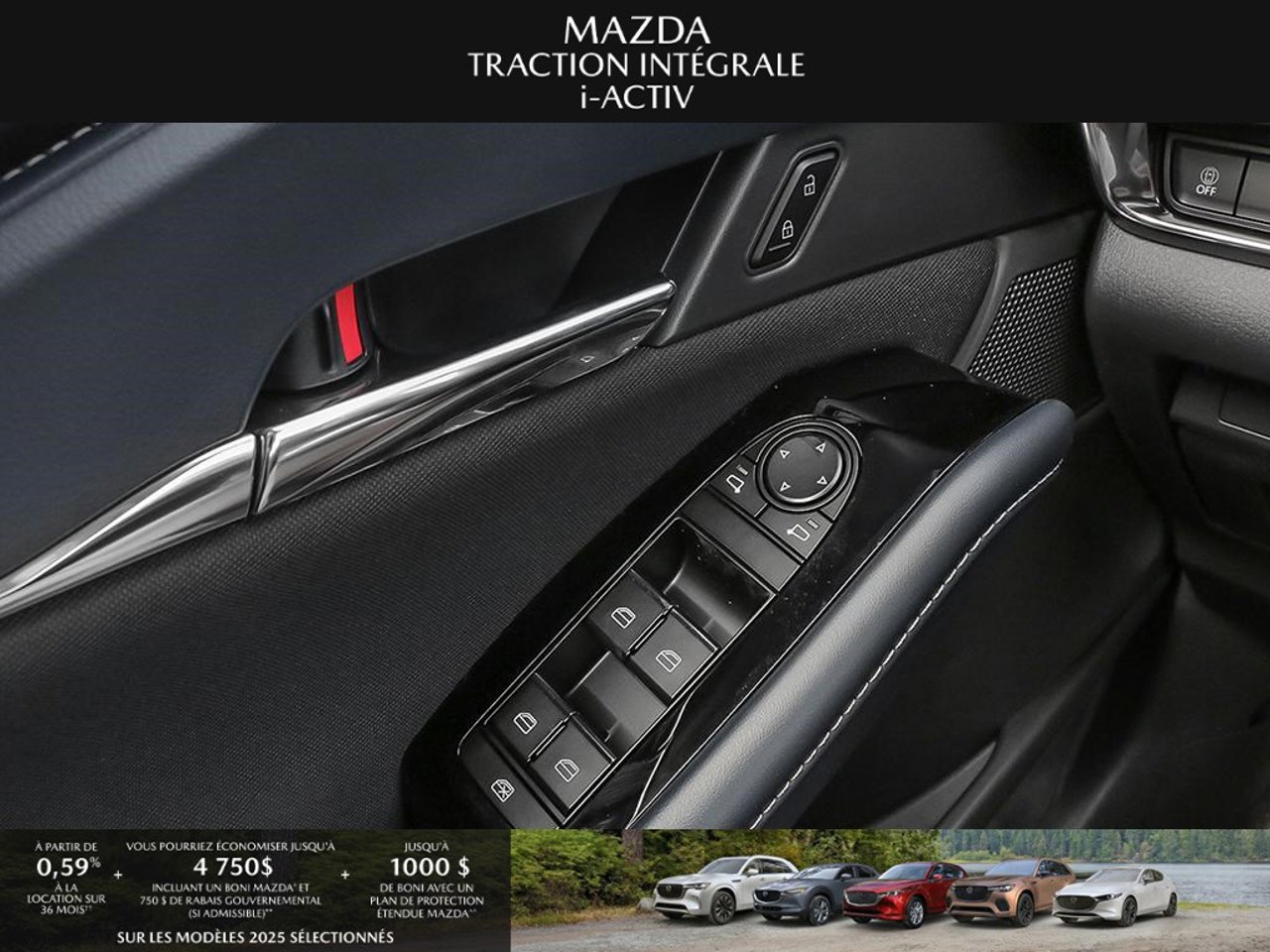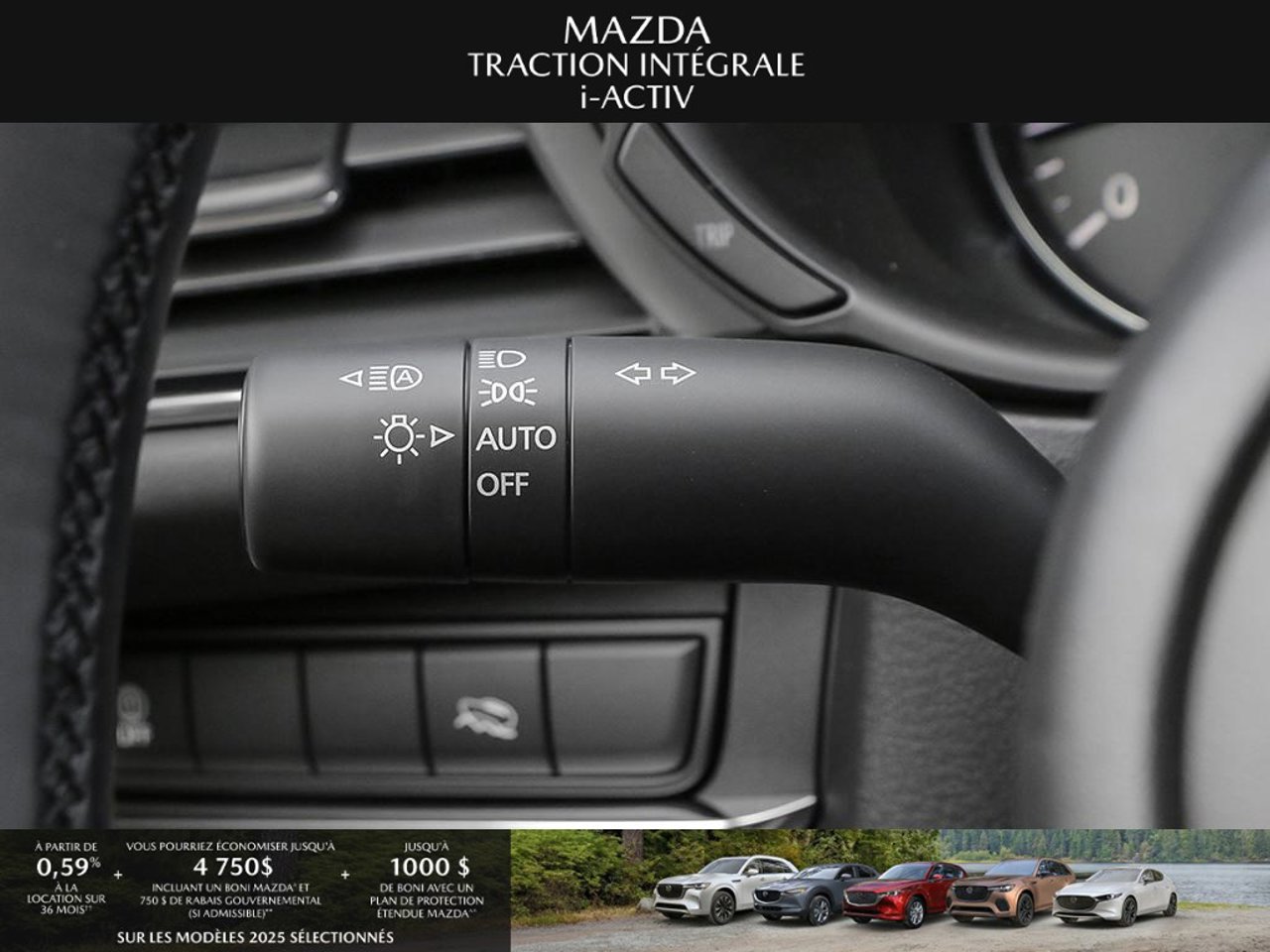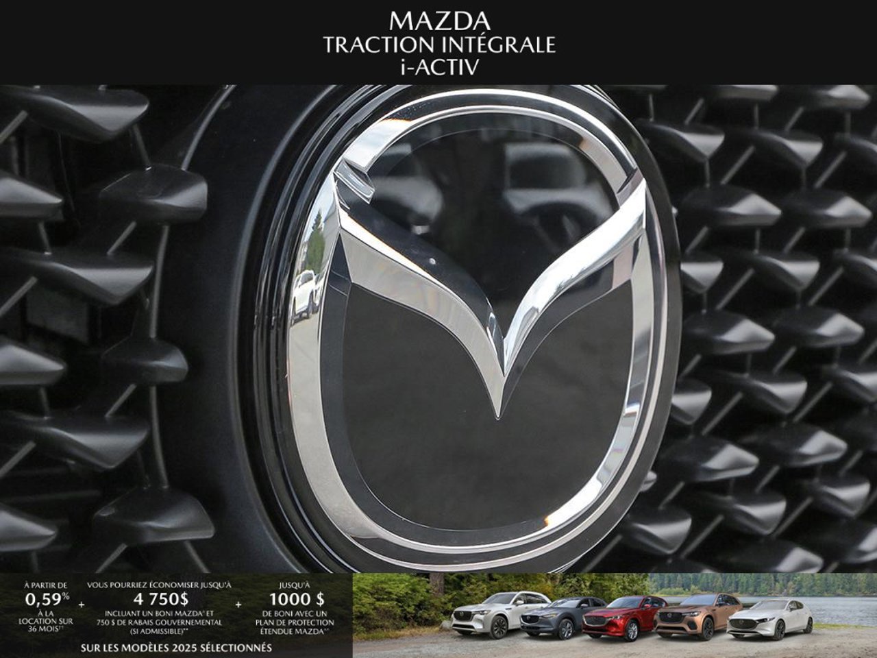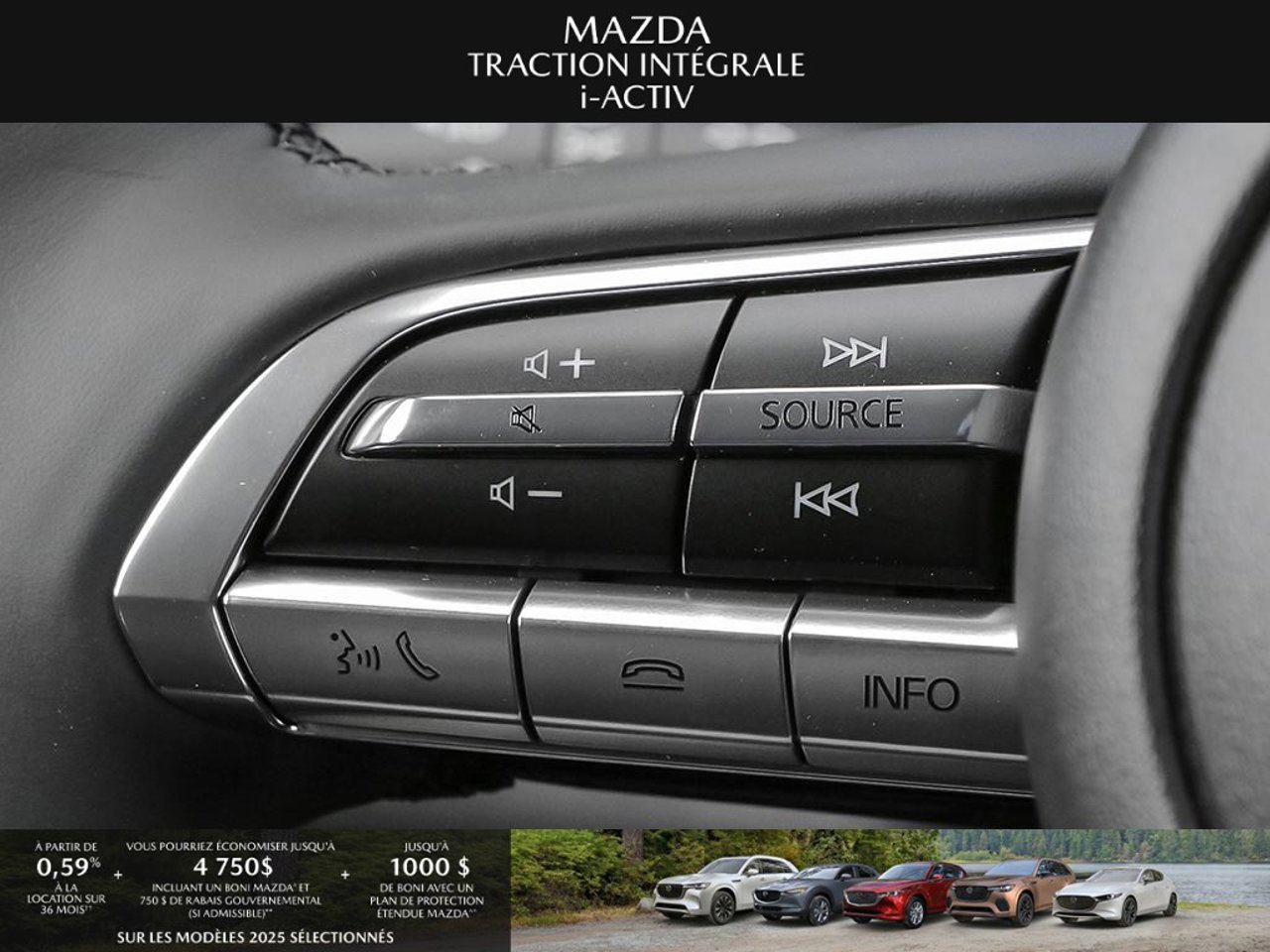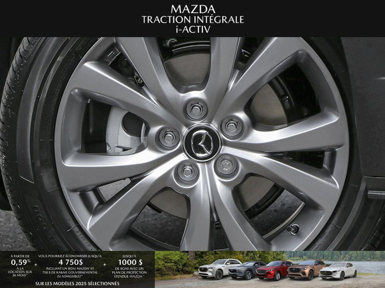 *Transparence des prix -- Planète Mazda*Chez Planète Mazda, nous croyons en une tarification claire et sans surprise. * Inclus dans le prix : * Prix de détail suggéré par le fabricant (PDSF) * Frais de transport * Inspection et préparation avant livraison (PDI) * Frais environnementaux sur les pneus neufs * Taxe d'accise sur le climatiseur * Barrures de roue * Protection des pneus et des jantes pendant 12 moisLe prix final affiché est basé sur un achat comptant.*Pricing Transparency -- Planète Mazda*At Planète Mazda, we are committed to clear, upfront pricing with no hidden fees.Included in the advertised price: * Manufacturer's Suggested Retail Price (MSRP) * Freight charges * Pre-Delivery Inspection (PDI) * Environmental tire fees * Air conditioning excise tax * Wheel locks * 12-month tire and rim protectionFinal advertised price is based on a cash purchase.