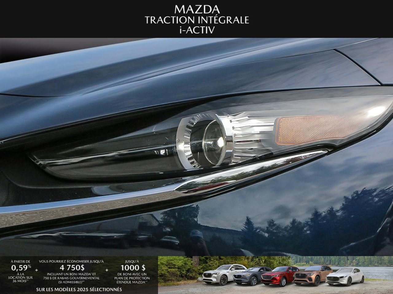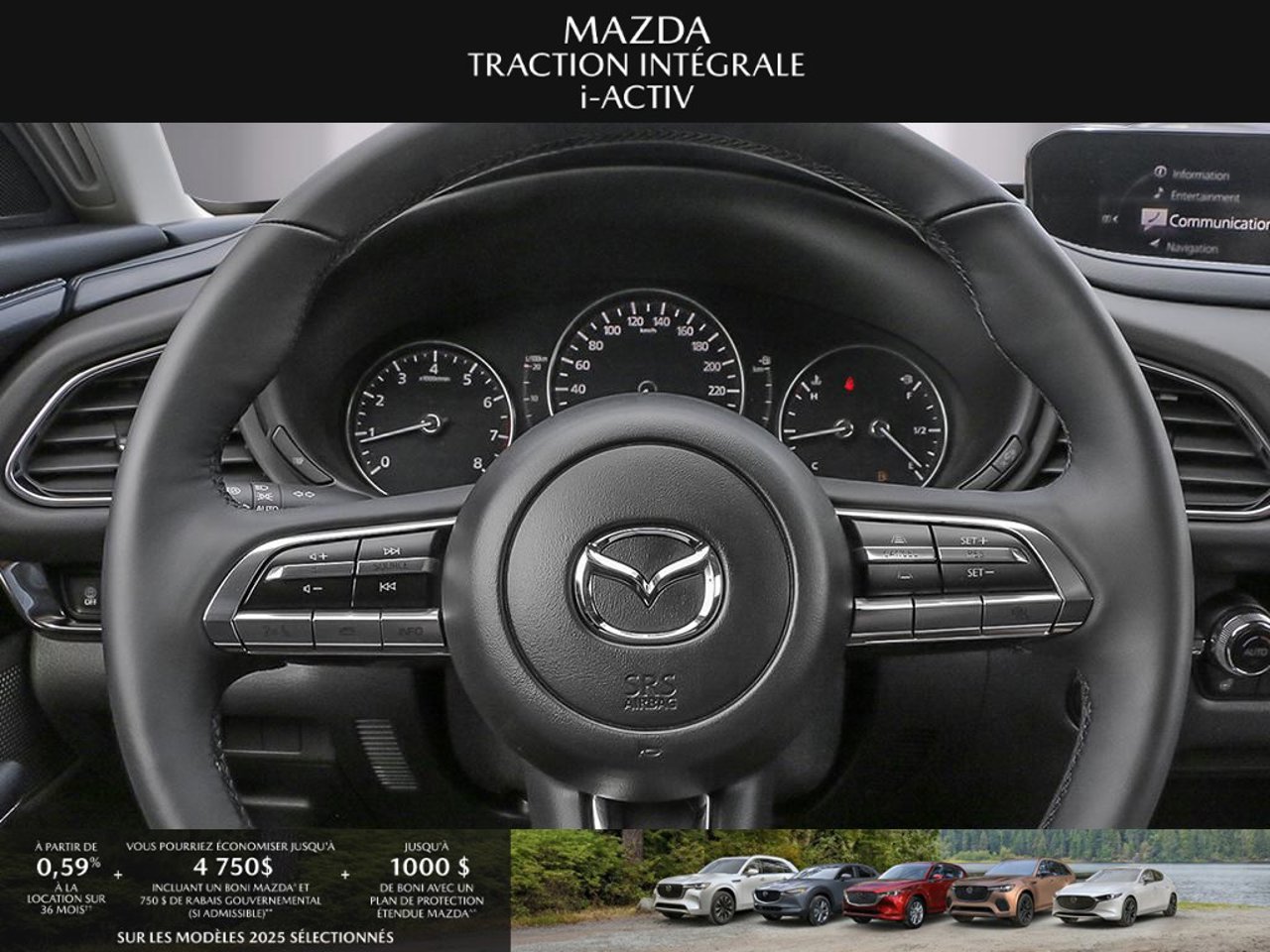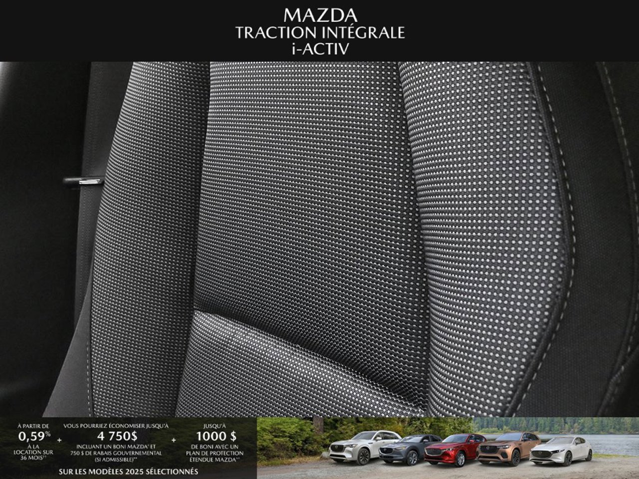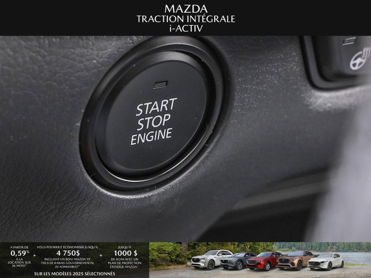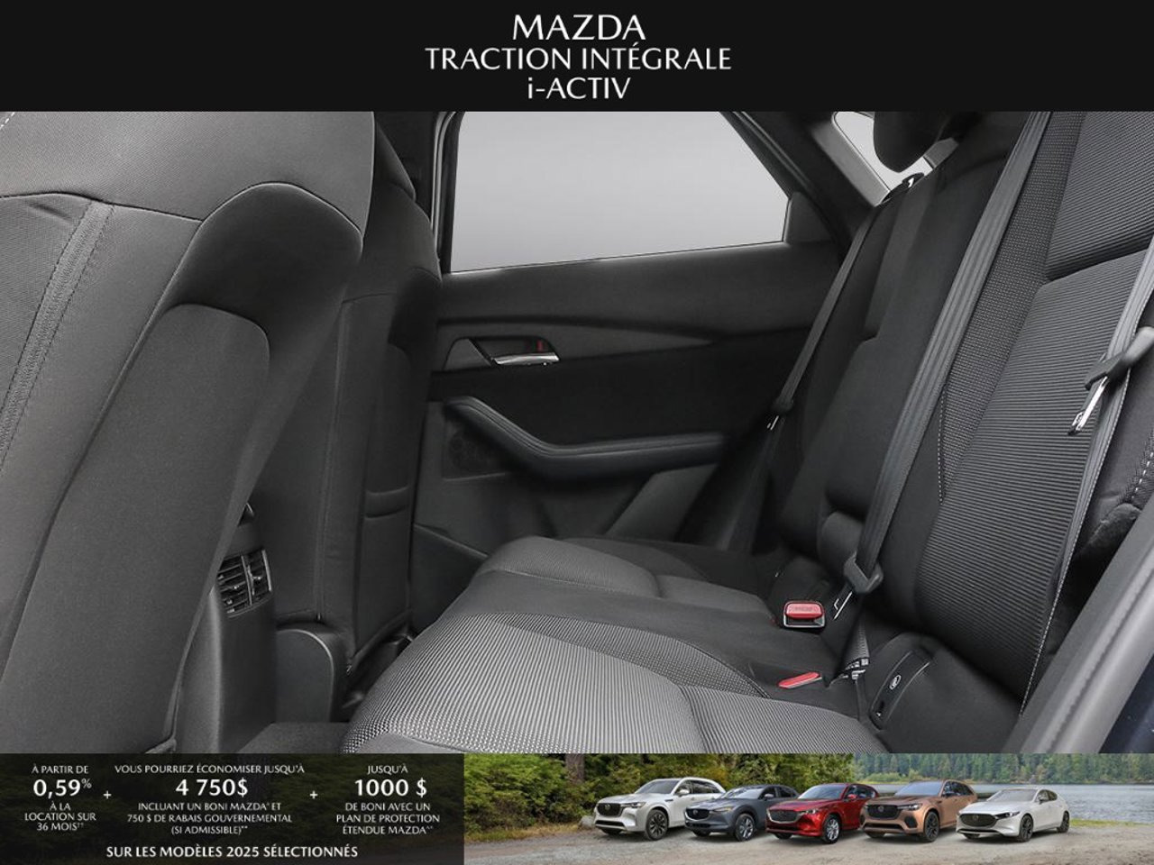 *Transparence des prix -- Planète Mazda*Chez Planète Mazda, nous croyons en une tarification claire et sans surprise. * Inclus dans le prix : * Prix de détail suggéré par le fabricant (PDSF) * Frais de transport * Inspection et préparation avant livraison (PDI) * Frais environnementaux sur les pneus neufs * Taxe d'accise sur le climatiseur * Barrures de roue * Protection des pneus et des jantes pendant 12 moisLe prix final affiché est basé sur un achat comptant.*Pricing Transparency -- Planète Mazda*At Planète Mazda, we are committed to clear, upfront pricing with no hidden fees.Included in the advertised price: * Manufacturer's Suggested Retail Price (MSRP) * Freight charges * Pre-Delivery Inspection (PDI) * Environmental tire fees * Air conditioning excise tax * Wheel locks * 12-month tire and rim protectionFinal advertised price is based on a cash purchase.