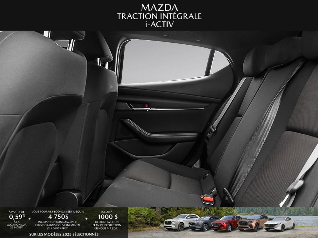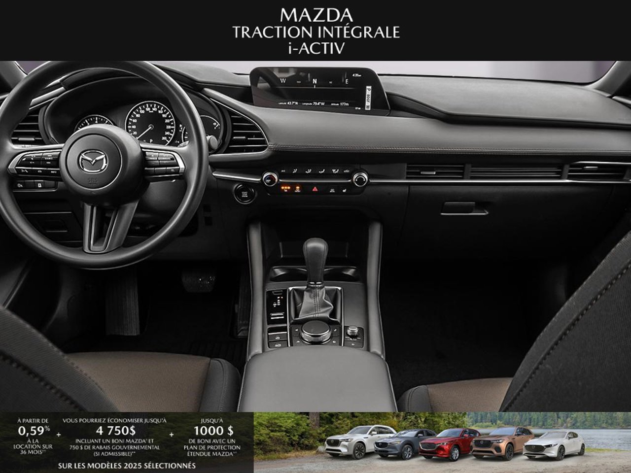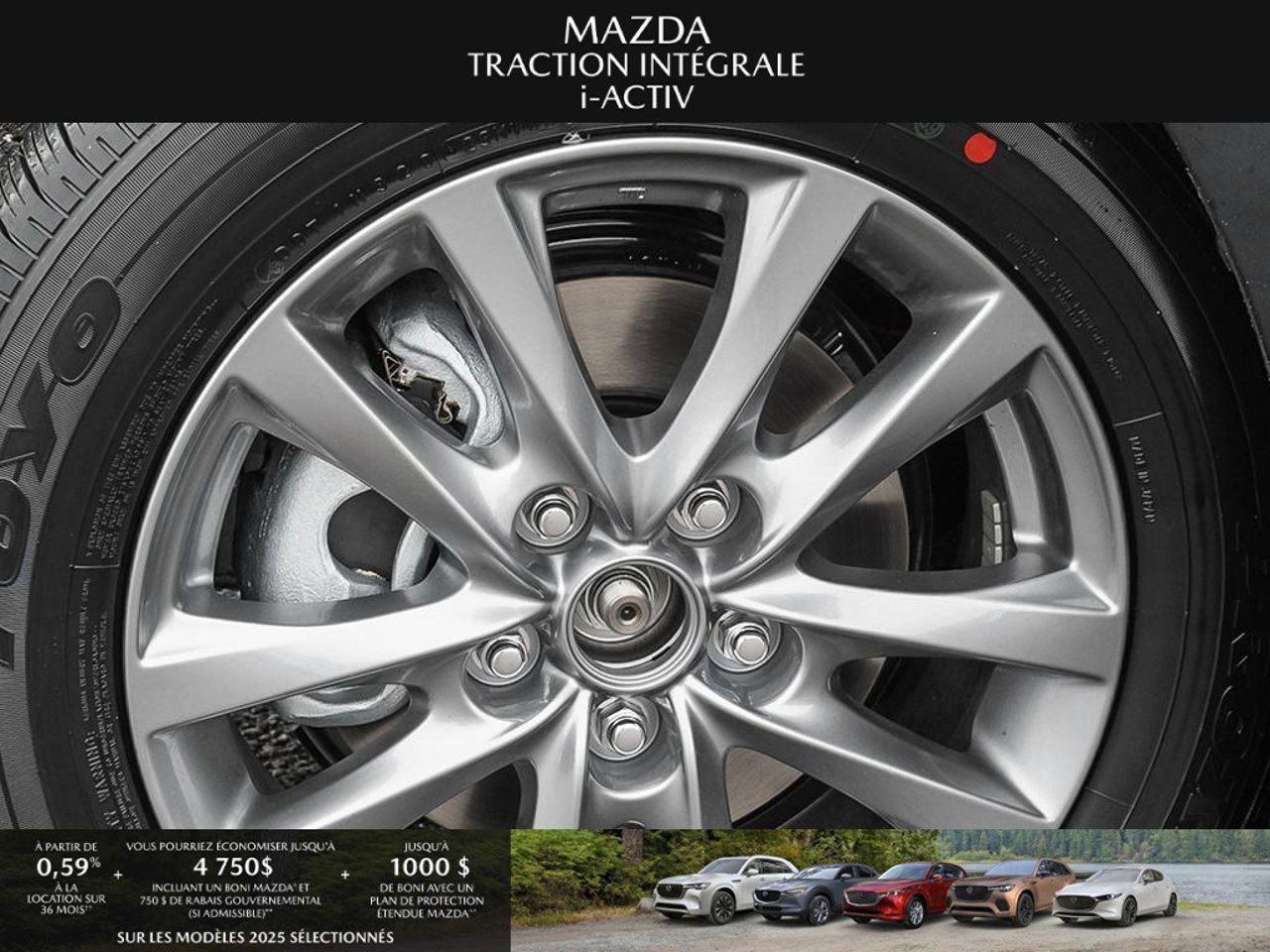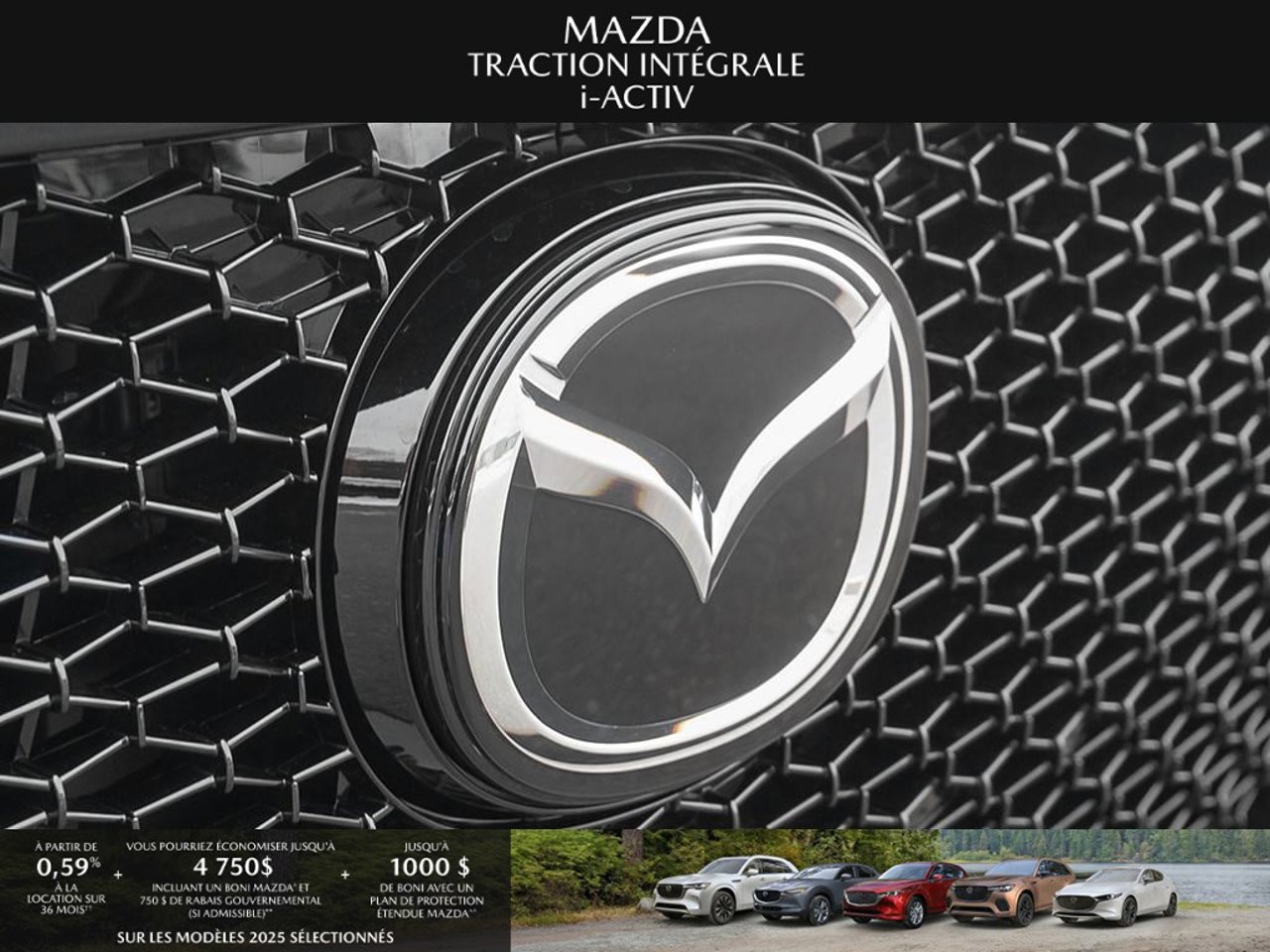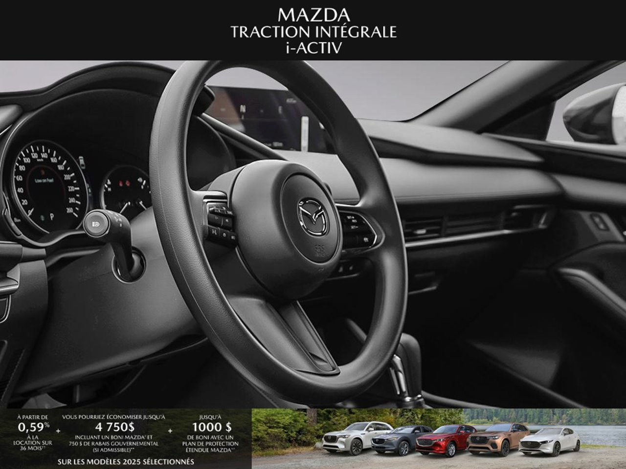 *Transparence des prix -- Planète Mazda*Chez Planète Mazda, nous croyons en une tarification claire et sans surprise. * Inclus dans le prix : * Prix de détail suggéré par le fabricant (PDSF) * Frais de transport * Inspection et préparation avant livraison (PDI) * Frais environnementaux sur les pneus neufs * Taxe d'accise sur le climatiseur * Barrures de roue * Protection des pneus et des jantes pendant 12 moisLe prix final affiché est basé sur un achat comptant.*Pricing Transparency -- Planète Mazda*At Planète Mazda, we are committed to clear, upfront pricing with no hidden fees.Included in the advertised price: * Manufacturer's Suggested Retail Price (MSRP) * Freight charges * Pre-Delivery Inspection (PDI) * Environmental tire fees * Air conditioning excise tax * Wheel locks * 12-month tire and rim protectionFinal advertised price is based on a cash purchase.
