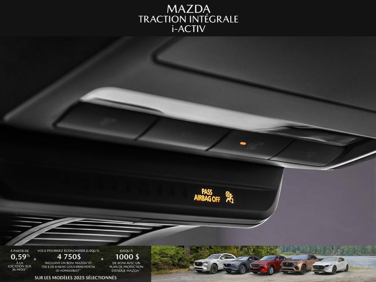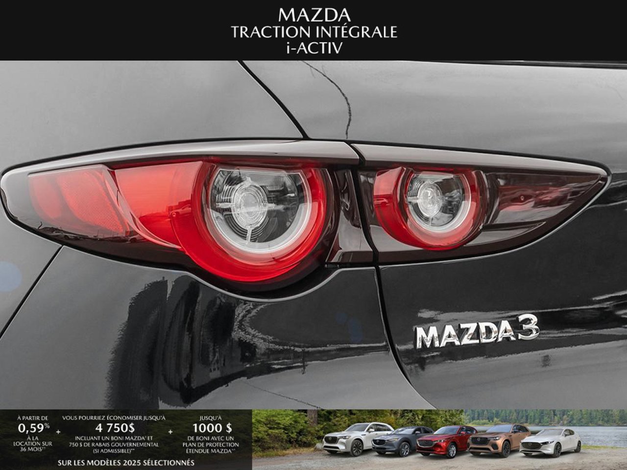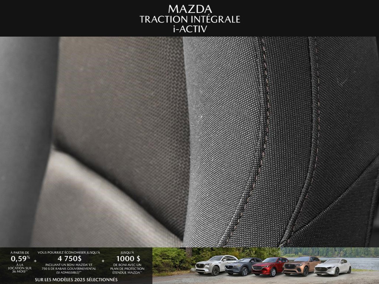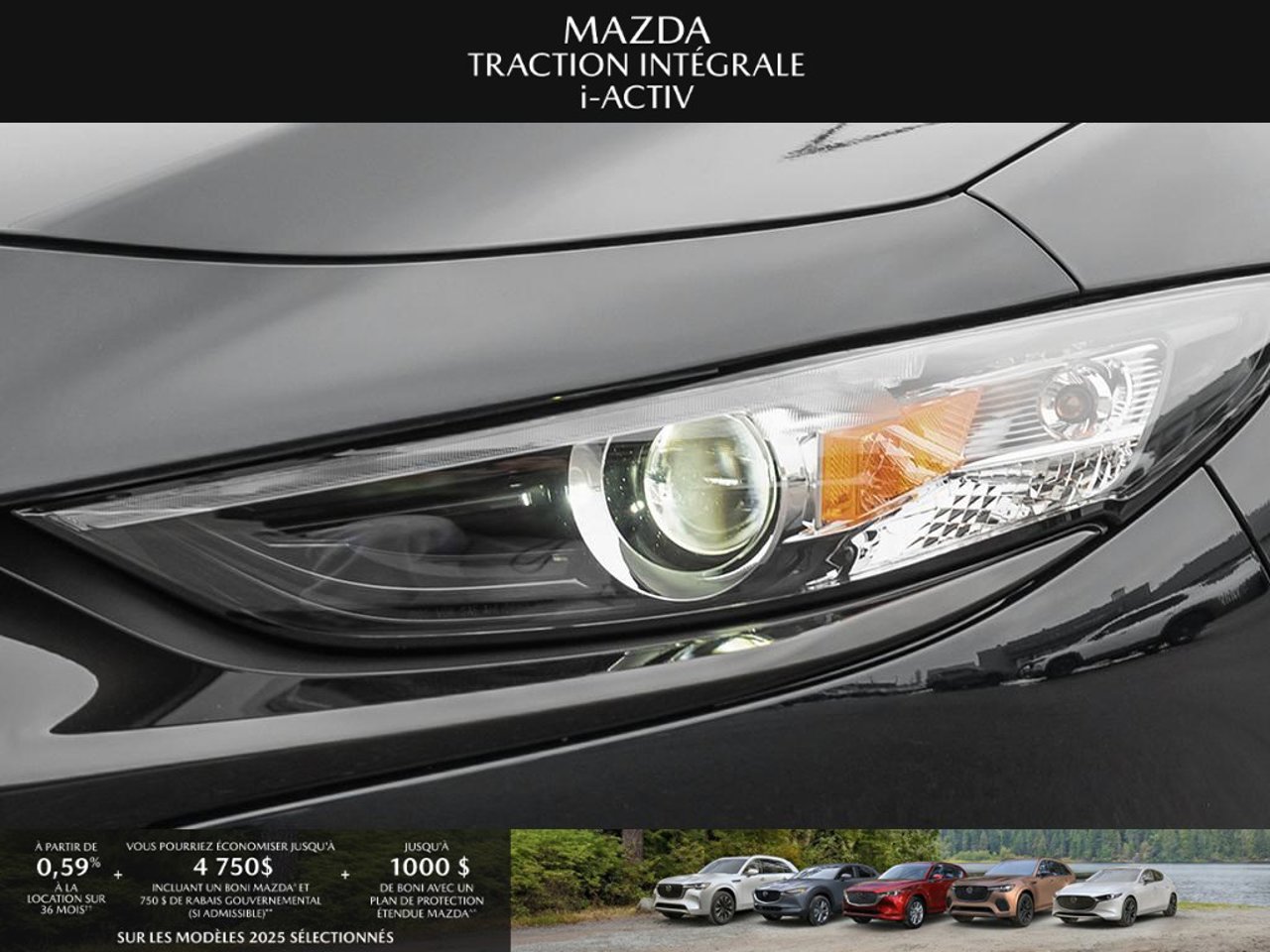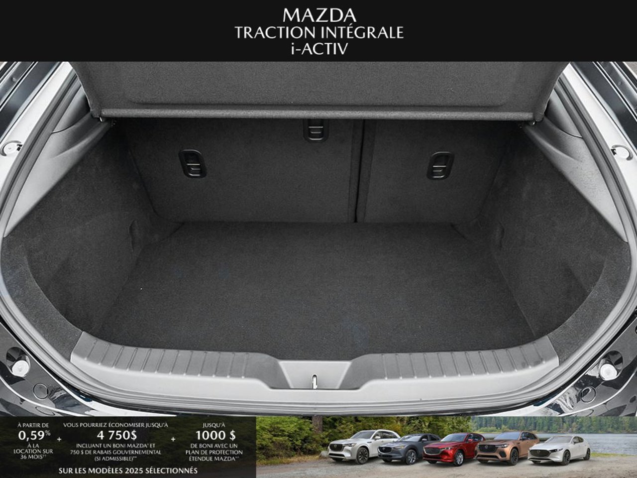*Transparence des prix -- Planète Mazda*Chez Planète Mazda, nous croyons en une tarification claire et sans surprise. * Inclus dans le prix : * Prix de détail suggéré par le fabricant (PDSF) * Frais de transport * Inspection et préparation avant livraison (PDI) * Frais environnementaux sur les pneus neufs * Taxe d'accise sur le climatiseur * Barrures de roue * Protection des pneus et des jantes pendant 12 moisLe prix final affiché est basé sur un achat comptant.*Pricing Transparency -- Planète Mazda*At Planète Mazda, we are committed to clear, upfront pricing with no hidden fees.Included in the advertised price: * Manufacturer's Suggested Retail Price (MSRP) * Freight charges * Pre-Delivery Inspection (PDI) * Environmental tire fees * Air conditioning excise tax * Wheel locks * 12-month tire and rim protectionFinal advertised price is based on a cash purchase.