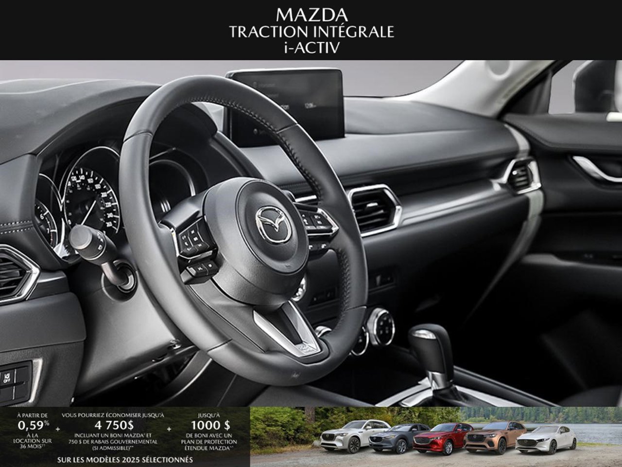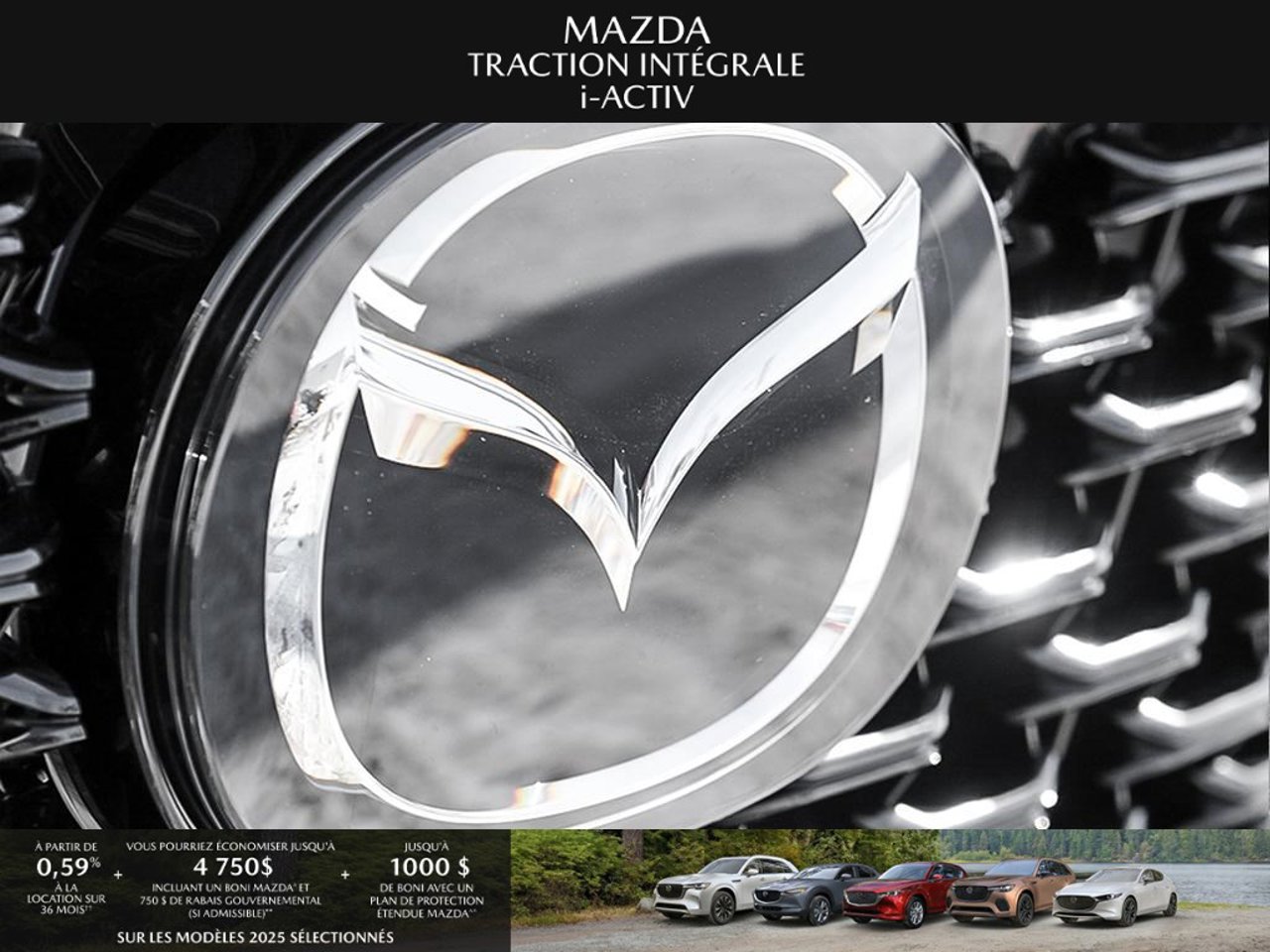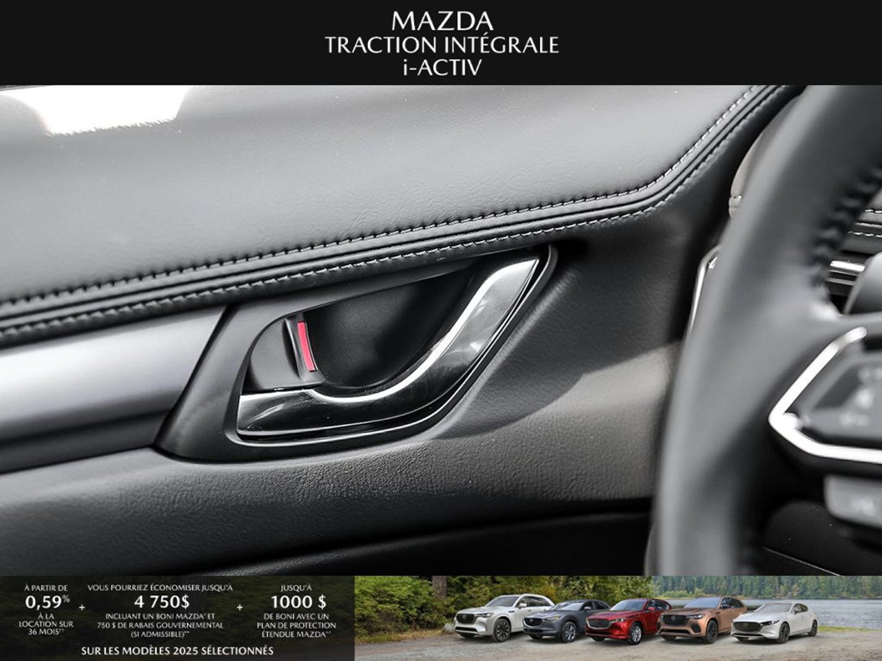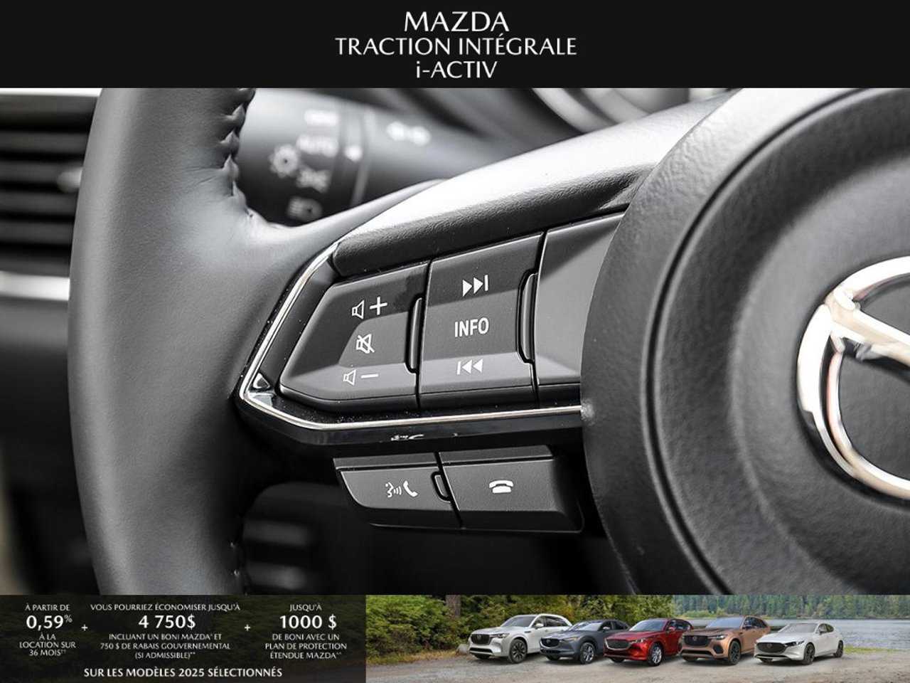 *Transparence des prix -- Planète Mazda*Chez Planète Mazda, nous croyons en une tarification claire et sans surprise. * Inclus dans le prix : * Prix de détail suggéré par le fabricant (PDSF) * Frais de transport * Inspection et préparation avant livraison (PDI) * Frais environnementaux sur les pneus neufs * Taxe d'accise sur le climatiseur * Barrures de roue * Protection des pneus et des jantes pendant 12 moisLe prix final affiché est basé sur un achat comptant.*Pricing Transparency -- Planète Mazda*At Planète Mazda, we are committed to clear, upfront pricing with no hidden fees.Included in the advertised price: * Manufacturer's Suggested Retail Price (MSRP) * Freight charges * Pre-Delivery Inspection (PDI) * Environmental tire fees * Air conditioning excise tax * Wheel locks * 12-month tire and rim protectionFinal advertised price is based on a cash purchase.