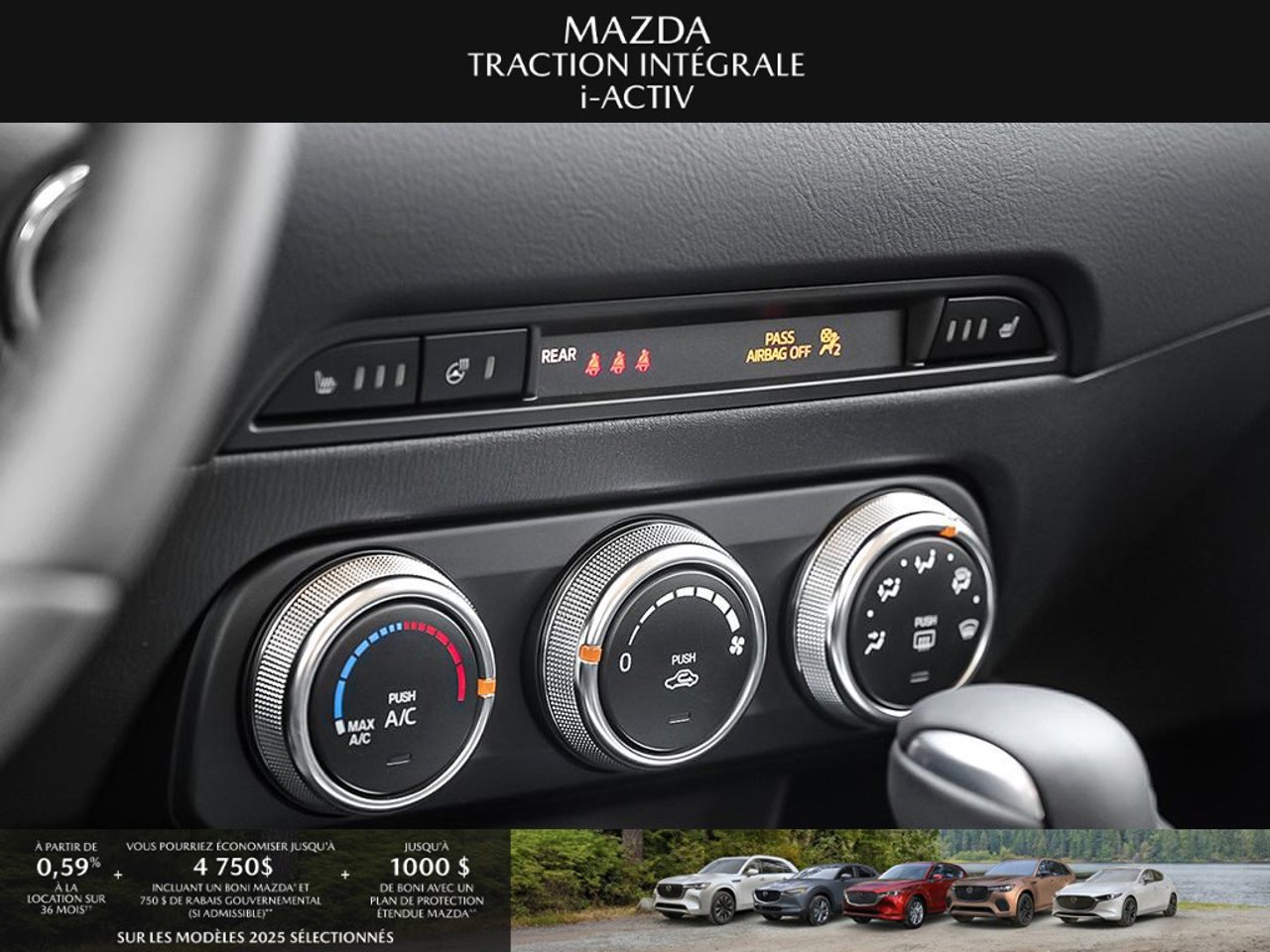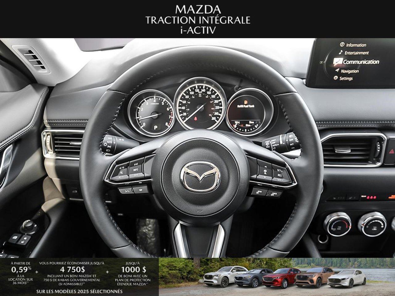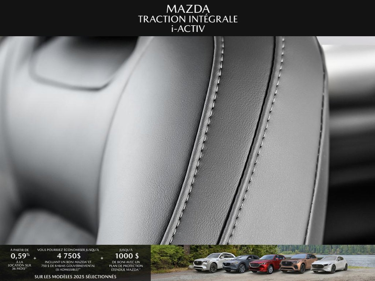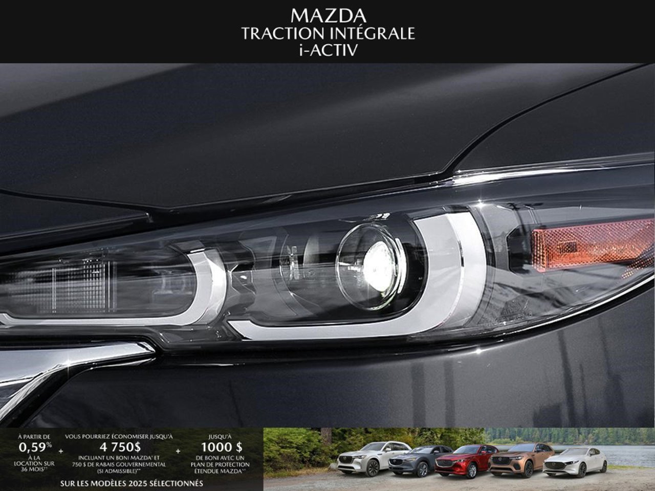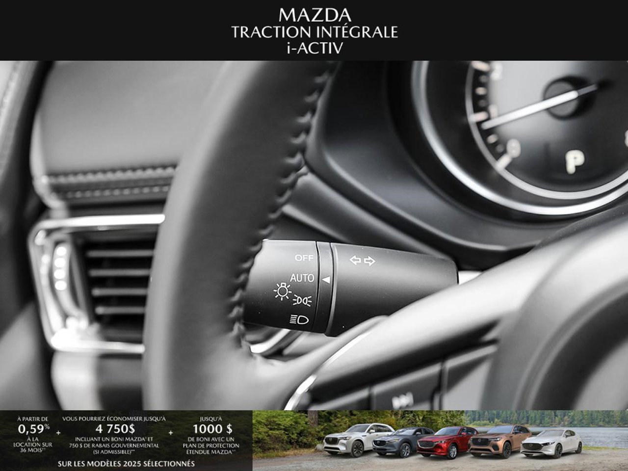 *Transparence des prix -- Planète Mazda*Chez Planète Mazda, nous croyons en une tarification claire et sans surprise. * Inclus dans le prix : * Prix de détail suggéré par le fabricant (PDSF) * Frais de transport * Inspection et préparation avant livraison (PDI) * Frais environnementaux sur les pneus neufs * Taxe d'accise sur le climatiseur * Barrures de roue * Protection des pneus et des jantes pendant 12 moisLe prix final affiché est basé sur un achat comptant.*Pricing Transparency -- Planète Mazda*At Planète Mazda, we are committed to clear, upfront pricing with no hidden fees.Included in the advertised price: * Manufacturer's Suggested Retail Price (MSRP) * Freight charges * Pre-Delivery Inspection (PDI) * Environmental tire fees * Air conditioning excise tax * Wheel locks * 12-month tire and rim protectionFinal advertised price is based on a cash purchase.