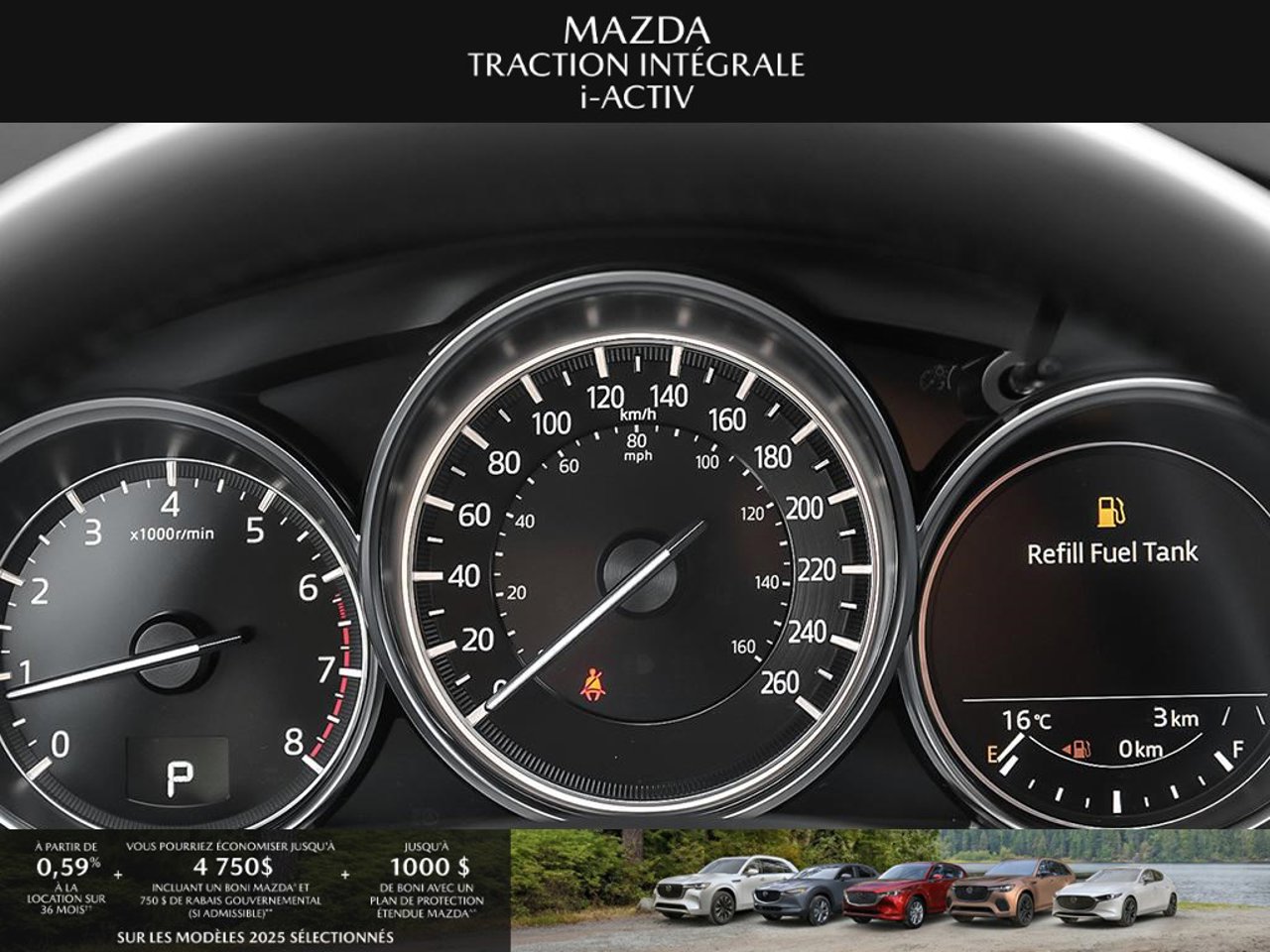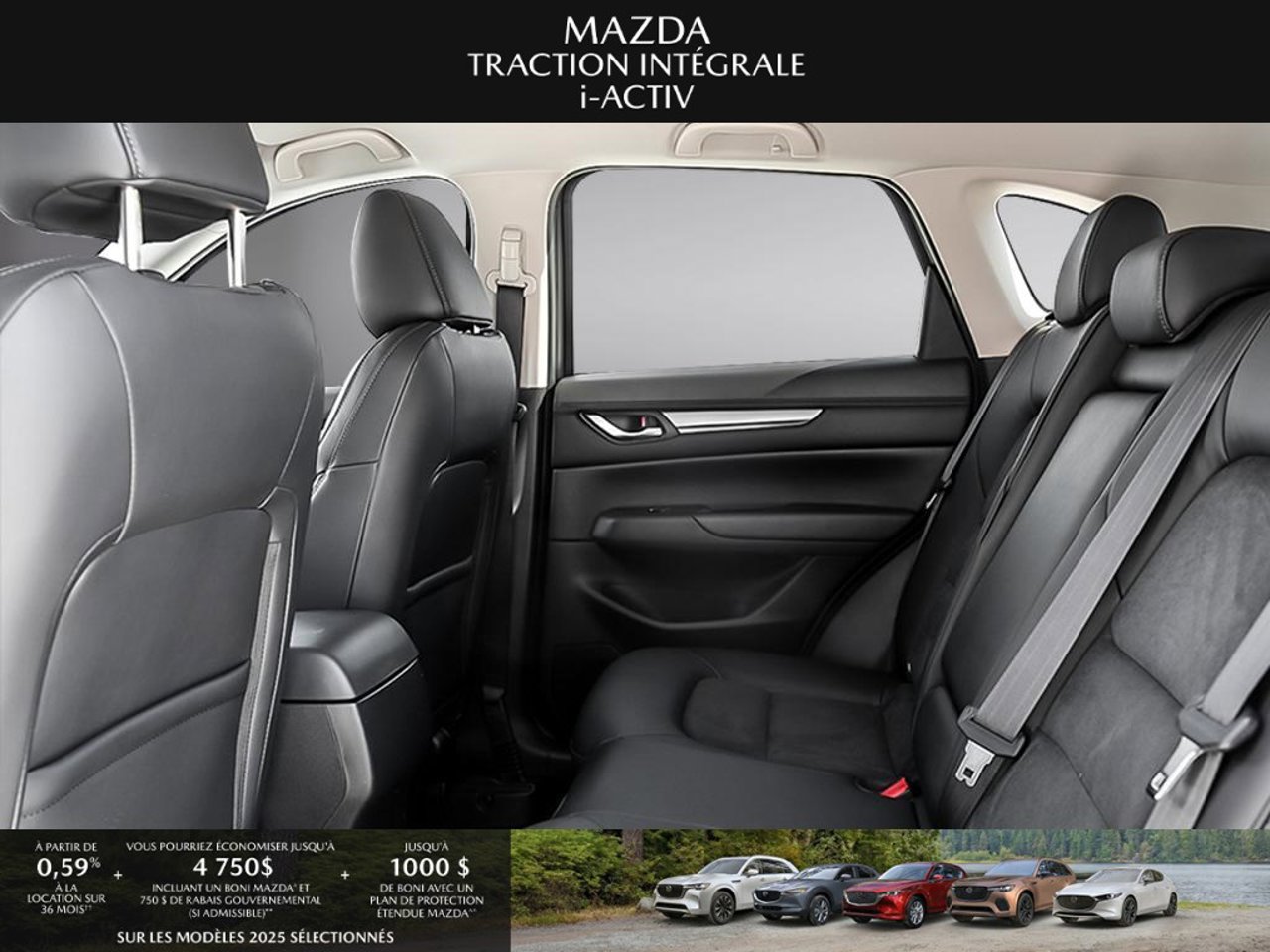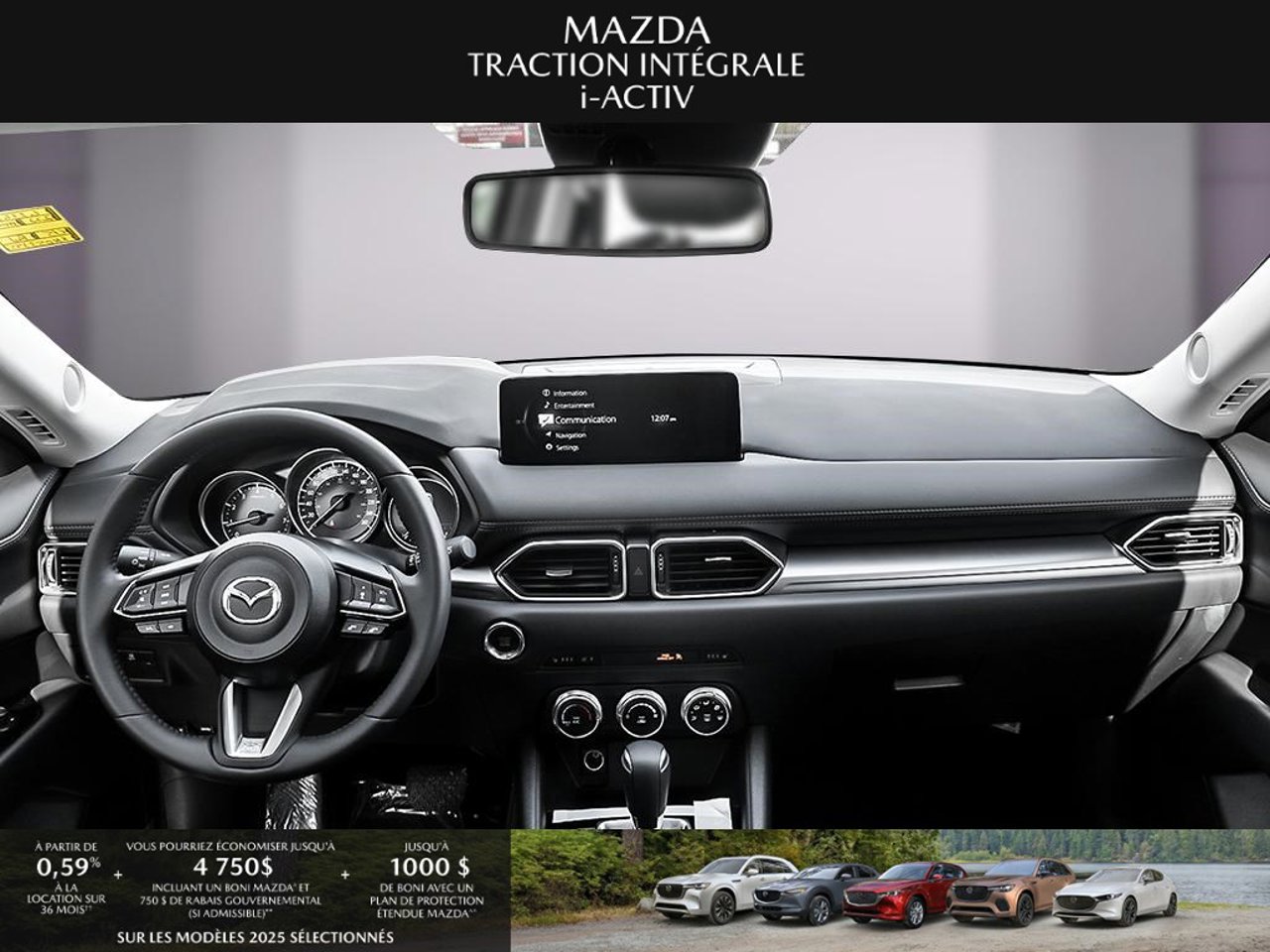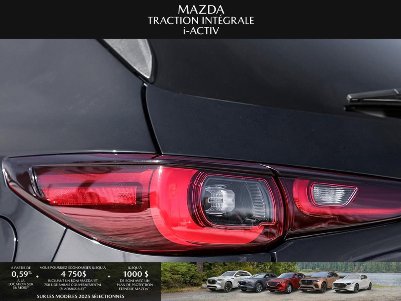 *Transparence des prix -- Planète Mazda*Chez Planète Mazda, nous croyons en une tarification claire et sans surprise. * Inclus dans le prix : * Prix de détail suggéré par le fabricant (PDSF) * Frais de transport * Inspection et préparation avant livraison (PDI) * Frais environnementaux sur les pneus neufs * Taxe d'accise sur le climatiseur * Barrures de roue * Protection des pneus et des jantes pendant 12 moisLe prix final affiché est basé sur un achat comptant.*Pricing Transparency -- Planète Mazda*At Planète Mazda, we are committed to clear, upfront pricing with no hidden fees.Included in the advertised price: * Manufacturer's Suggested Retail Price (MSRP) * Freight charges * Pre-Delivery Inspection (PDI) * Environmental tire fees * Air conditioning excise tax * Wheel locks * 12-month tire and rim protectionFinal advertised price is based on a cash purchase.