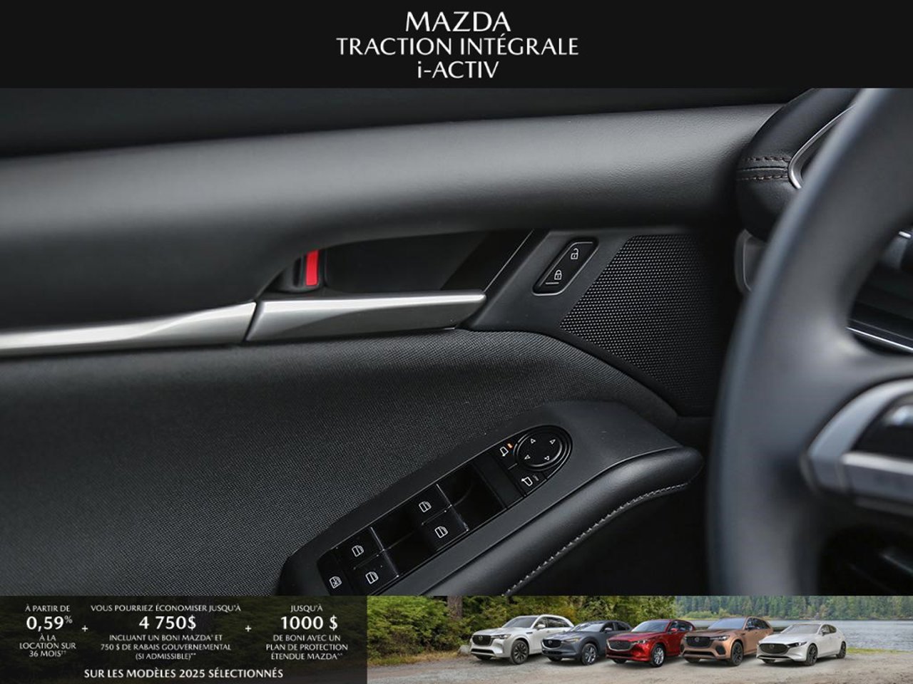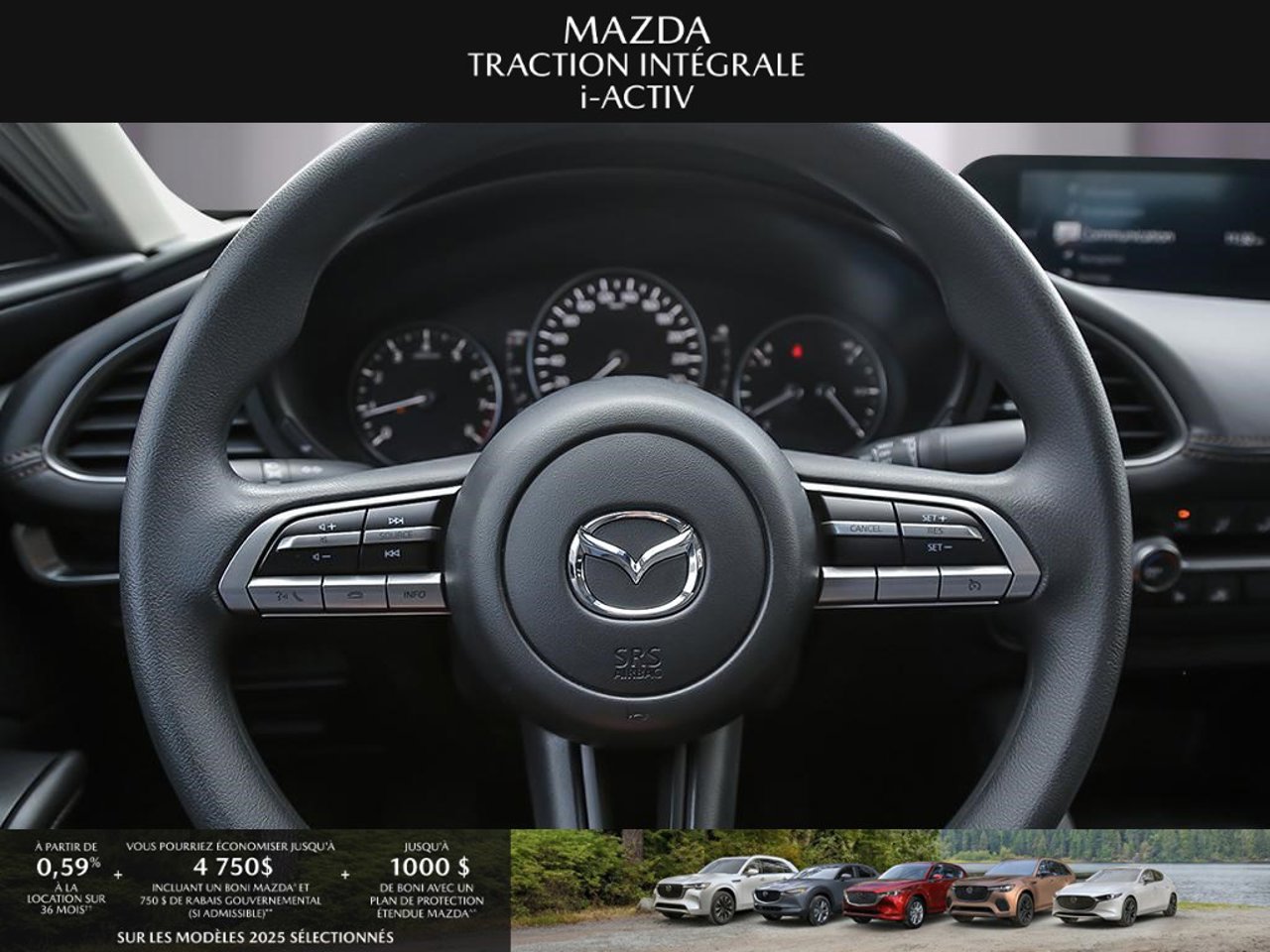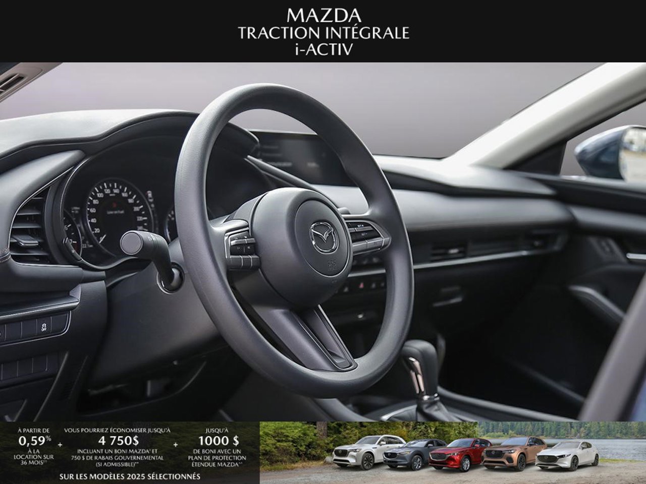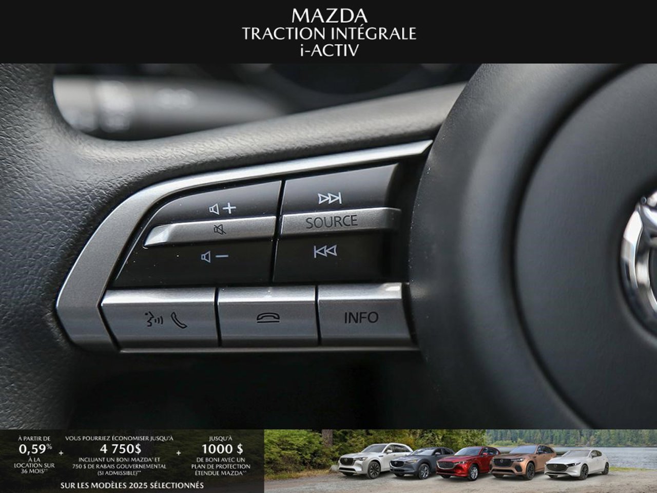 *Transparence des prix -- Planète Mazda*Chez Planète Mazda, nous croyons en une tarification claire et sans surprise. * Inclus dans le prix : * Prix de détail suggéré par le fabricant (PDSF) * Frais de transport * Inspection et préparation avant livraison (PDI) * Frais environnementaux sur les pneus neufs * Taxe d'accise sur le climatiseur * Barrures de roue * Protection des pneus et des jantes pendant 12 moisLe prix final affiché est basé sur un achat comptant.*Pricing Transparency -- Planète Mazda*At Planète Mazda, we are committed to clear, upfront pricing with no hidden fees.Included in the advertised price: * Manufacturer's Suggested Retail Price (MSRP) * Freight charges * Pre-Delivery Inspection (PDI) * Environmental tire fees * Air conditioning excise tax * Wheel locks * 12-month tire and rim protectionFinal advertised price is based on a cash purchase.