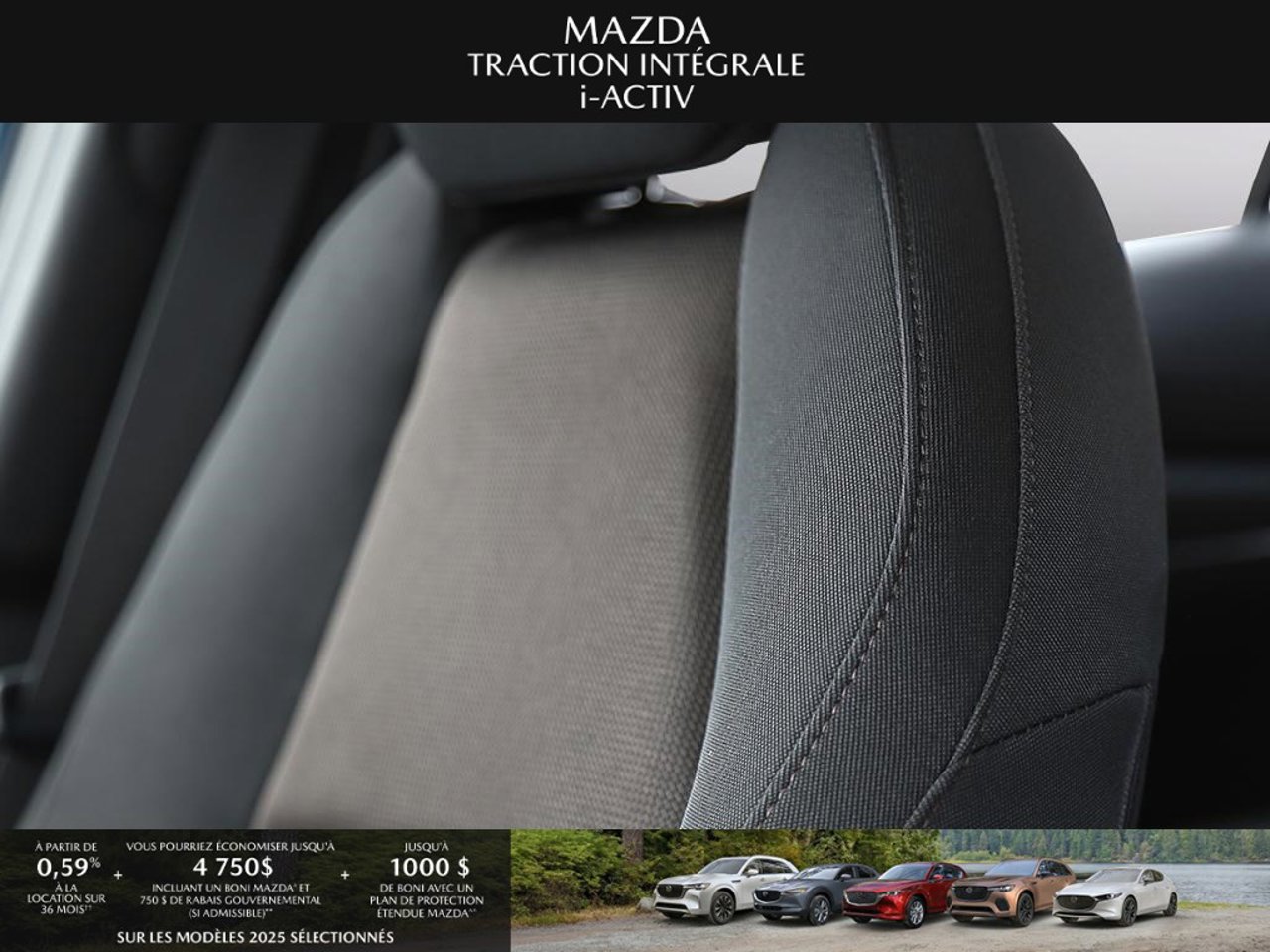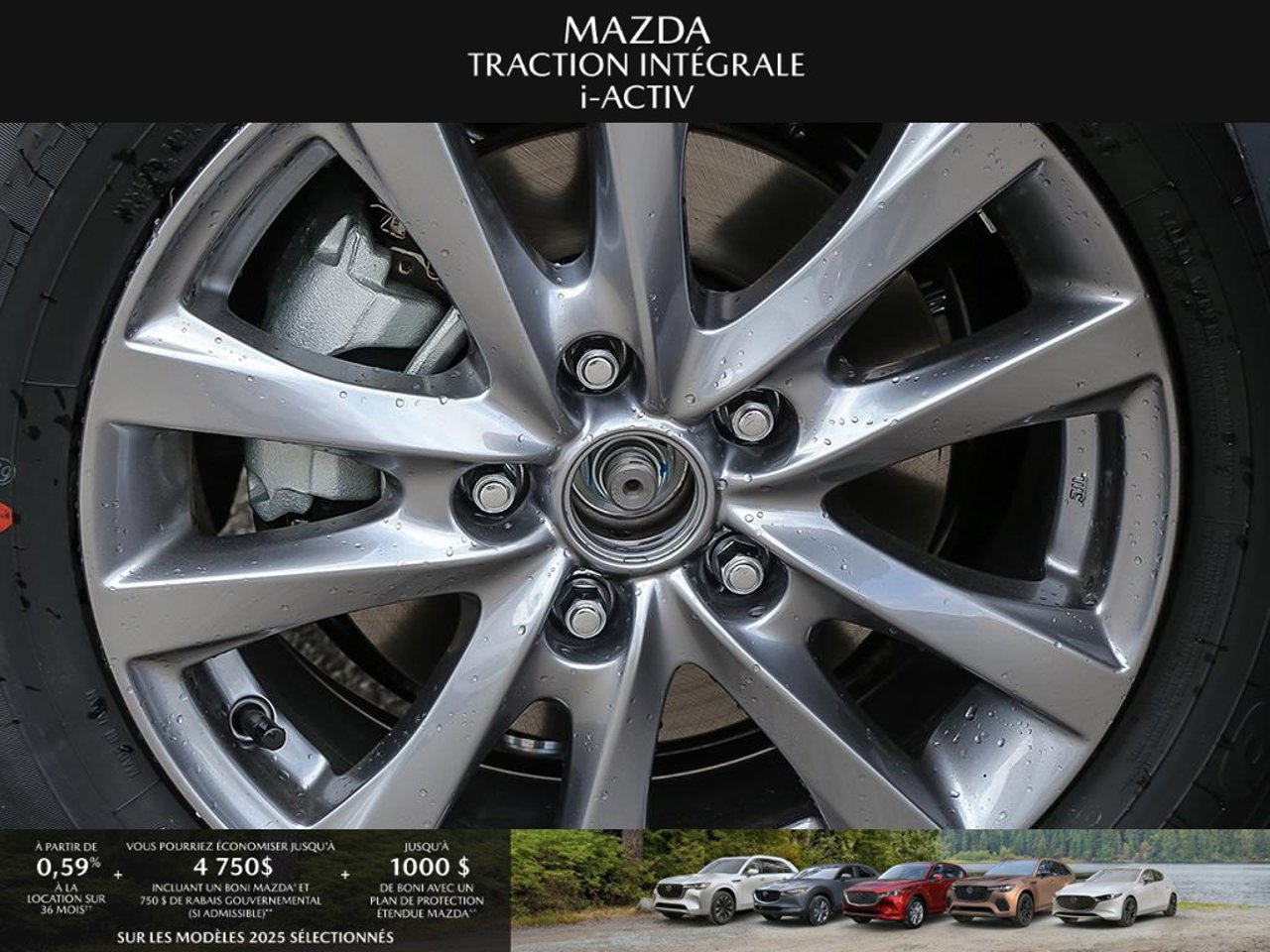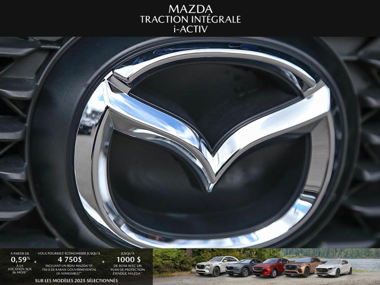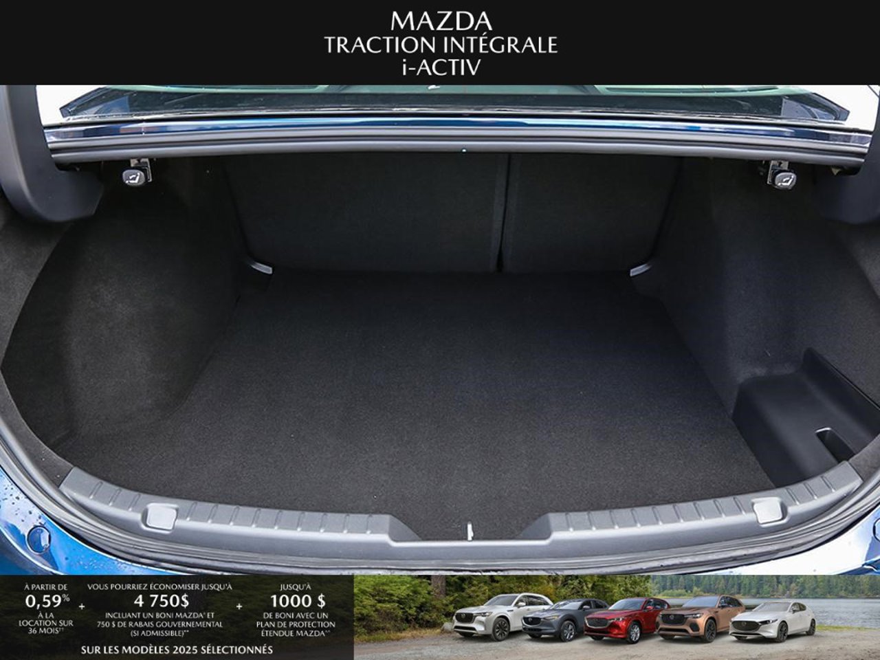 *Transparence des prix -- Planète Mazda*Chez Planète Mazda, nous croyons en une tarification claire et sans surprise. * Inclus dans le prix : * Prix de détail suggéré par le fabricant (PDSF) * Frais de transport * Inspection et préparation avant livraison (PDI) * Frais environnementaux sur les pneus neufs * Taxe d'accise sur le climatiseur * Barrures de roue * Protection des pneus et des jantes pendant 12 moisLe prix final affiché est basé sur un achat comptant.*Pricing Transparency -- Planète Mazda*At Planète Mazda, we are committed to clear, upfront pricing with no hidden fees.Included in the advertised price: * Manufacturer's Suggested Retail Price (MSRP) * Freight charges * Pre-Delivery Inspection (PDI) * Environmental tire fees * Air conditioning excise tax * Wheel locks * 12-month tire and rim protectionFinal advertised price is based on a cash purchase.